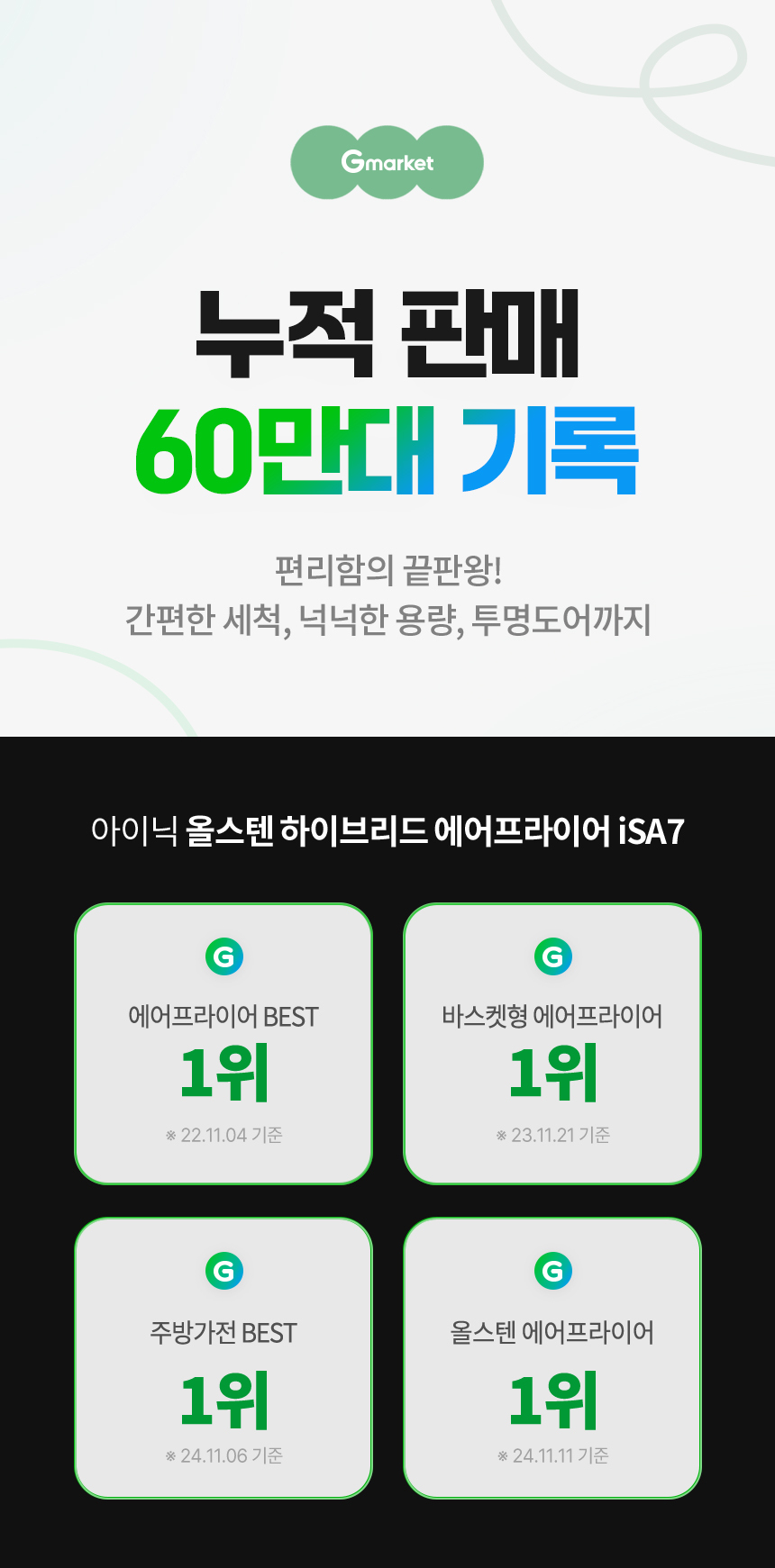 (최종 10.4만) 아이닉 올스텐 에어프라이어 iSA7 ( + 올스텐 디바이더 증정)